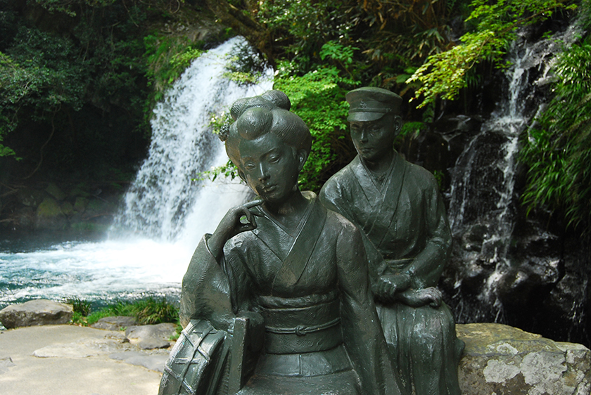 そして滝の傍にこの土地らしい銅像が。個人的には伊豆の踊子の話はよく知らないのですが、なんだか青春っぽいですねえ(←軽い;)