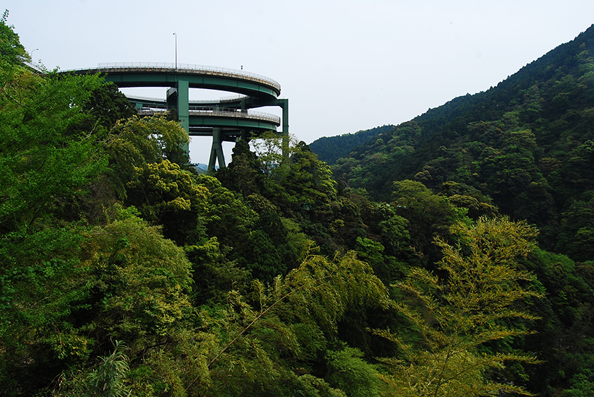河津七滝を知った時に気になっていたループ橋がすぐそこに。まさかとは思いましたが、修善寺駅へ戻るバスに乗ったら行きと違ってこのループ橋を通るルートだった・・・。酔い止め・・・飲んでて良かった・・・。